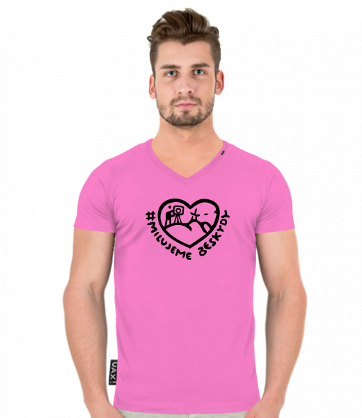 We make sustainable UAX clothing! - hand sewn in the Czech Republic uaxMen uaxAll productsT-shirtsT-SHIRTS SLIM FIT V NECKdesign 1356 - MILUJEME BESKYDY 2CLASSIC PINK