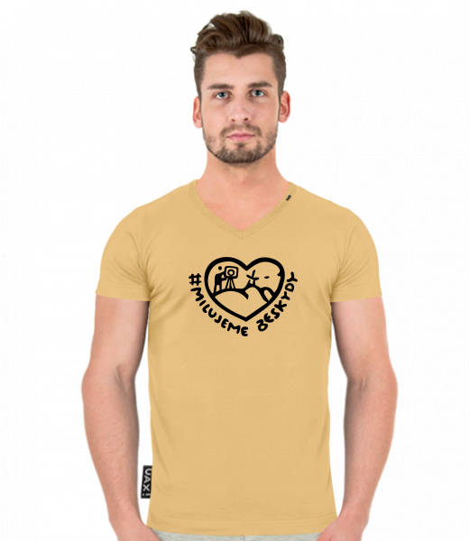 We make sustainable UAX clothing! - hand sewn in the Czech Republic uaxMen uaxAll productsT-shirtsT-SHIRTS SLIM FIT V NECKdesign 1356 - MILUJEME BESKYDY 2MUSTARD