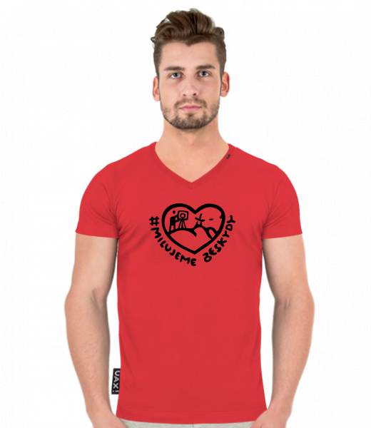 We make sustainable UAX clothing! - hand sewn in the Czech Republic uaxMen uaxAll productsT-shirtsT-SHIRTS SLIM FIT V NECKdesign 1356 - MILUJEME BESKYDY 2RED