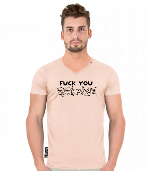 We make sustainable UAX clothing! - hand sewn in the Czech Republic uaxMen uaxAll productsT-shirtsT-SHIRTS SLIM FIT V NECKdesign 1358 - FU VERU MUCHCAPPUCINO