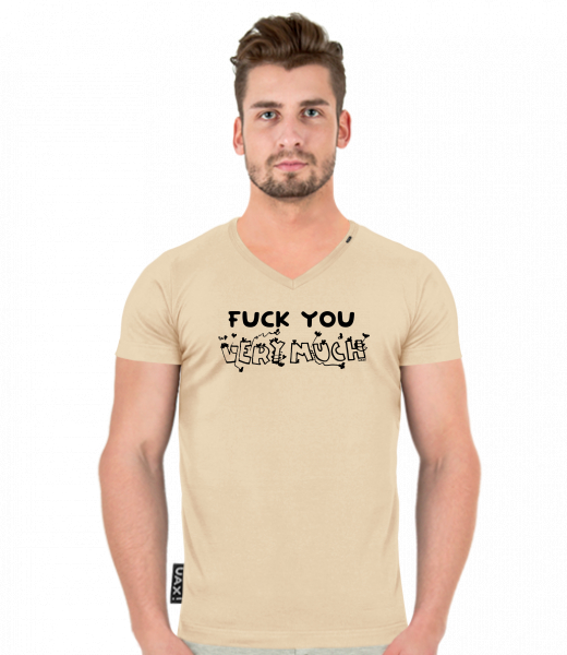 We make sustainable UAX clothing! - hand sewn in the Czech Republic uaxMen uaxAll productsT-shirtsT-SHIRTS SLIM FIT V NECKdesign 1358 - FU VERU MUCHCARAMEL