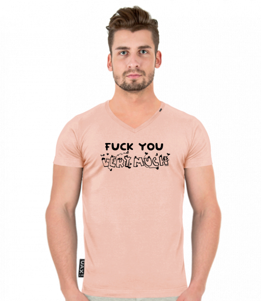 We make sustainable UAX clothing! - hand sewn in the Czech Republic uaxMen uaxAll productsT-shirtsT-SHIRTS SLIM FIT V NECKdesign 1358 - FU VERU MUCHPEACH