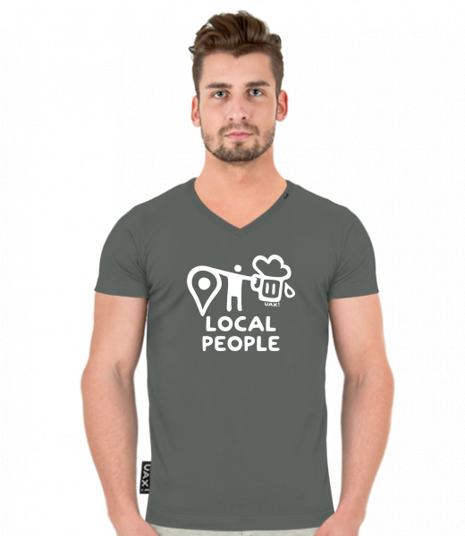 We make sustainable UAX clothing! - hand sewn in the Czech Republic uaxMen uaxAll productsT-shirtsT-SHIRTS SLIM FIT V NECKdesign 1360 - LOCAL PEOPLE BIGDARK GRAY