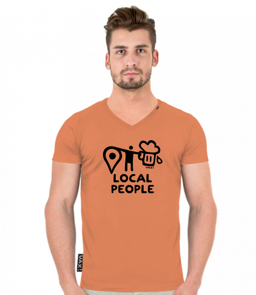 We make sustainable UAX clothing! - hand sewn in the Czech Republic uaxMen uaxAll productsT-shirtsT-SHIRTS SLIM FIT V NECKdesign 1360 - LOCAL PEOPLE BIGMANDARIAN ORANGE