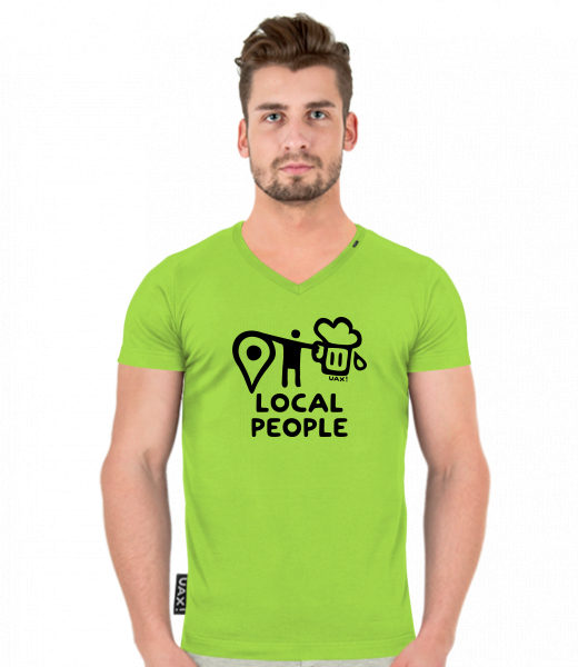 Men's T-shirt SLIM FIT with V nec for man with design 1360 LOCAL PEOPLE BIG in color PARROT GREEN