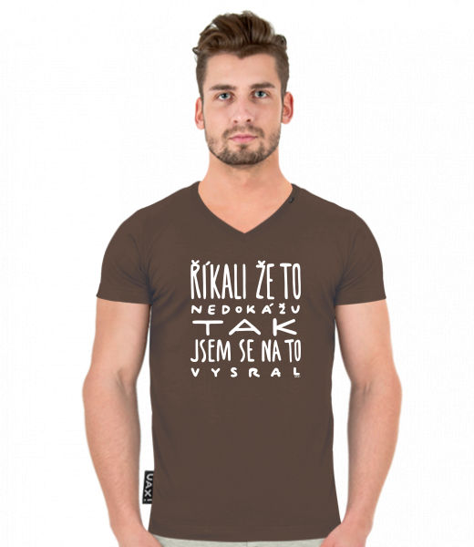 We make sustainable UAX clothing! - hand sewn in the Czech Republic uaxMen uaxAll productsT-shirtsT-SHIRTS SLIM FIT V NECKdesign 1366 - ŘÍKALI ŽE TO NEDOKÁŽU TAK JSEM SE NA TO VYSRALCHESTNUT