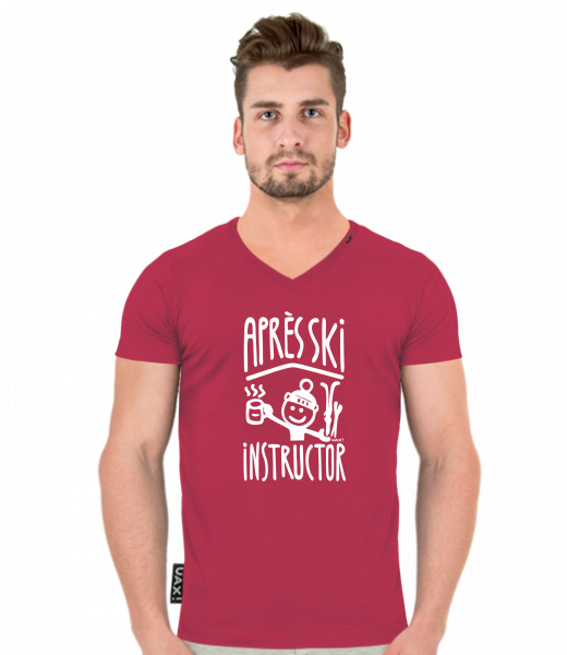 Men's T-shirt SLIM FIT with V nec for man with design 1367 APRÉS SKI INSTRUCTOR in color CHILLY PEPPER RED