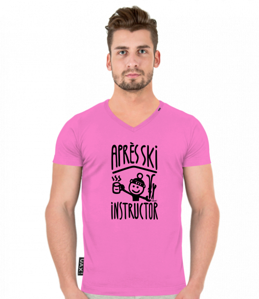 We make sustainable UAX clothing! - hand sewn in the Czech Republic uaxMen uaxAll productsT-shirtsT-SHIRTS SLIM FIT V NECKdesign 1367 - APRÉS SKI INSTRUCTORCLASSIC PINK