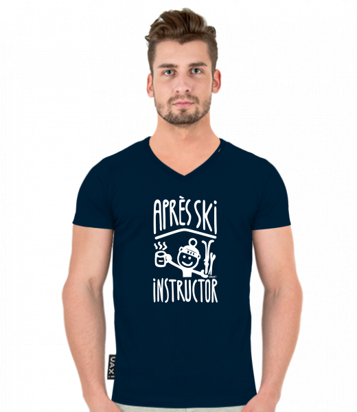 We make sustainable UAX clothing! - hand sewn in the Czech Republic uaxMen uaxAll productsT-shirtsT-SHIRTS SLIM FIT V NECKdesign 1367 - APRÉS SKI INSTRUCTORDARK NAVY