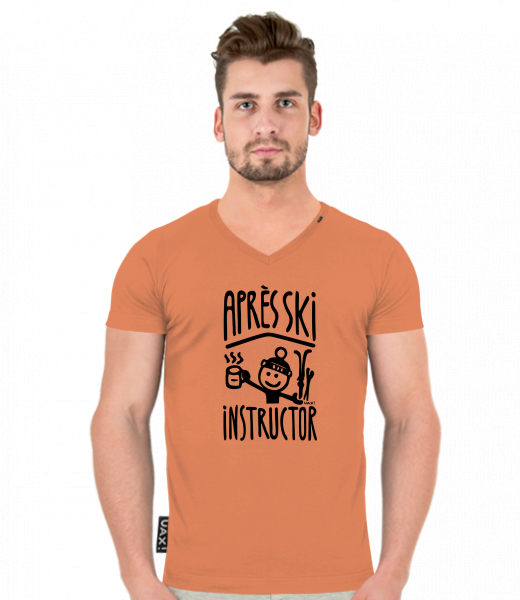 We make sustainable UAX clothing! - hand sewn in the Czech Republic uaxMen uaxAll productsT-shirtsT-SHIRTS SLIM FIT V NECKdesign 1367 - APRÉS SKI INSTRUCTORMANDARIAN ORANGE
