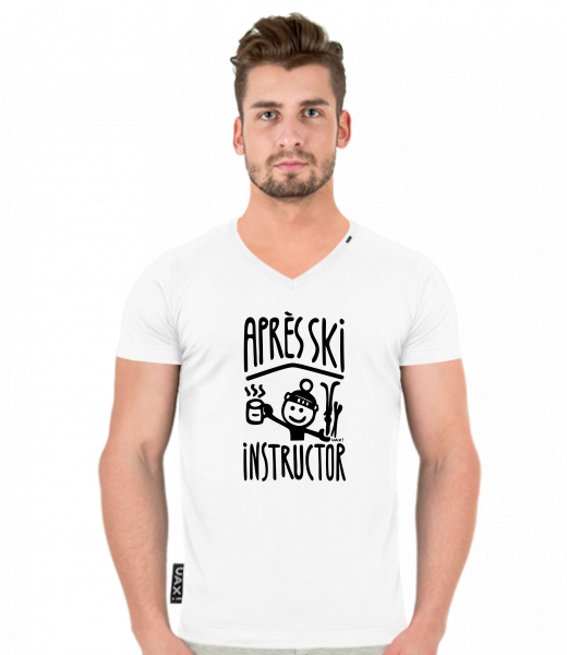 We make sustainable UAX clothing! - hand sewn in the Czech Republic uaxMen uaxAll productsT-shirtsT-SHIRTS SLIM FIT V NECKdesign 1367 - APRÉS SKI INSTRUCTORWHITE