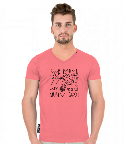 Men's T-shirt SLIM FIT with V nec for man with design 1368 POOOĎ KAMOON HORY MUSÍM JÍT GO in color LOSOSOVA