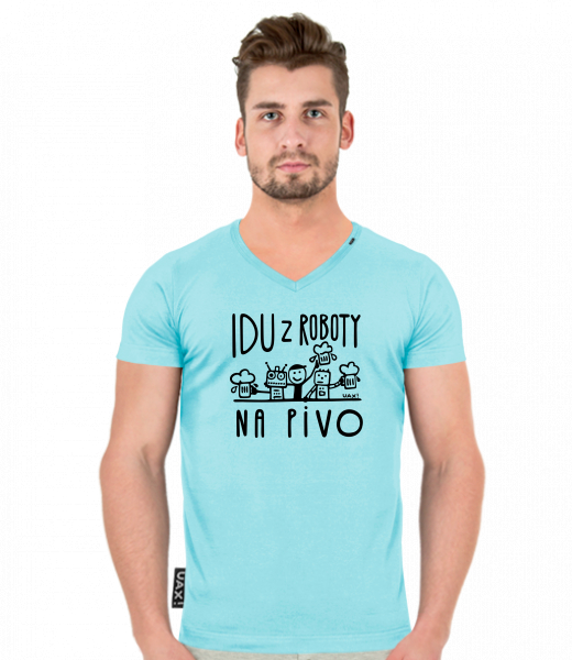 We make sustainable UAX clothing! - hand sewn in the Czech Republic uaxMen uaxAll productsT-shirtsT-SHIRTS SLIM FIT V NECKdesign 1369 - IDU Z ROBOTY NA PIVOPASTEL BLUE