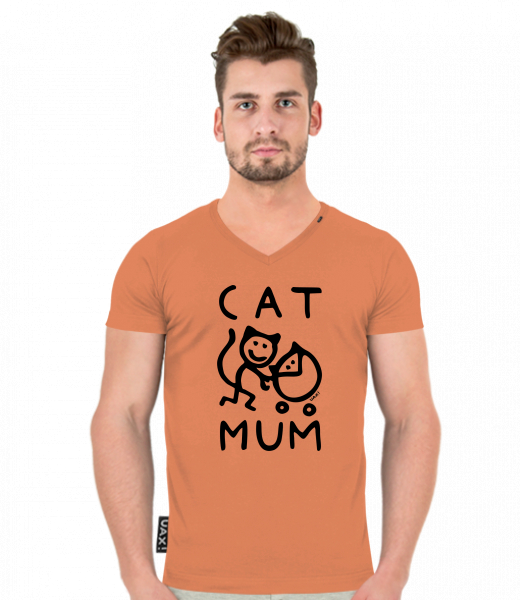 Men's T-shirt SLIM FIT with V nec for man with design 1375 CAT MUM in color MANDARIAN ORANGE
