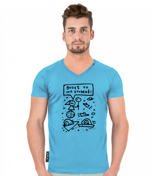 We make sustainable UAX clothing! - hand sewn in the Czech Republic uaxMen uaxAll productsT-shirtsT-SHIRTS SLIM FIT V NECKdesign 1386 - BUDEŠ TO MÍT STUDENÉBLUE ATOLL