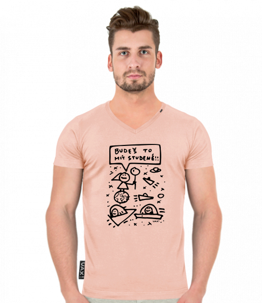 We make sustainable UAX clothing! - hand sewn in the Czech Republic uaxMen uaxAll productsT-shirtsT-SHIRTS SLIM FIT V NECKdesign 1386 - BUDEŠ TO MÍT STUDENÉPEACH