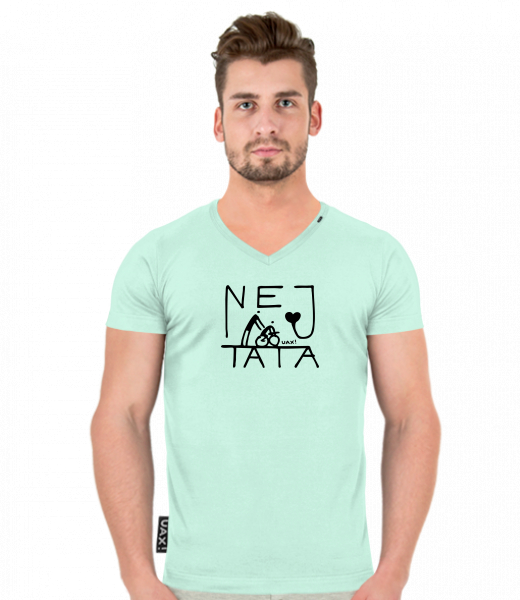 Men's T-shirt SLIM FIT with V nec for man with design 1388 NEJ TÁTA in color MINT