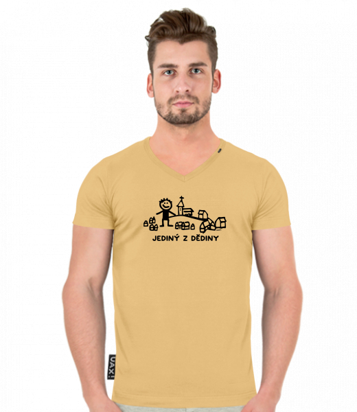 We make sustainable UAX clothing! - hand sewn in the Czech Republic uaxMen uaxAll productsT-shirtsT-SHIRTS SLIM FIT V NECKdesign 1393 - JEDINÝ Z DĚDINYMUSTARD