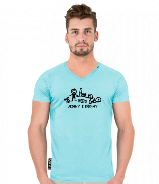 We make sustainable UAX clothing! - hand sewn in the Czech Republic uaxMen uaxAll productsT-shirtsT-SHIRTS SLIM FIT V NECKdesign 1393 - JEDINÝ Z DĚDINYPASTEL BLUE