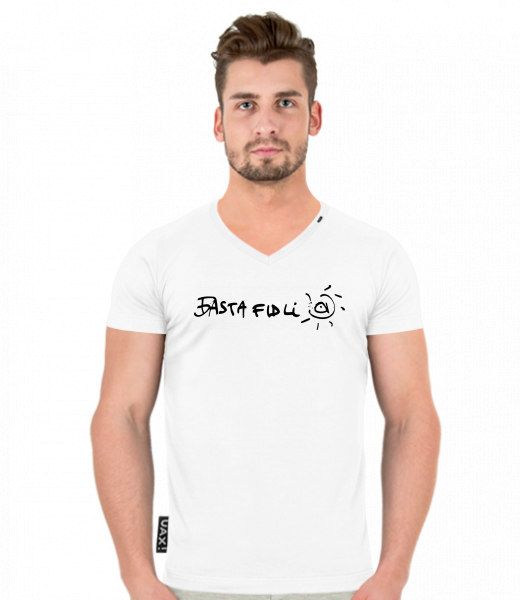 We make sustainable UAX clothing! - hand sewn in the Czech Republic uaxMen uaxAll productsT-shirtsT-SHIRTS SLIM FIT V NECKdesign 189 - BASTA FIDLIWHITE