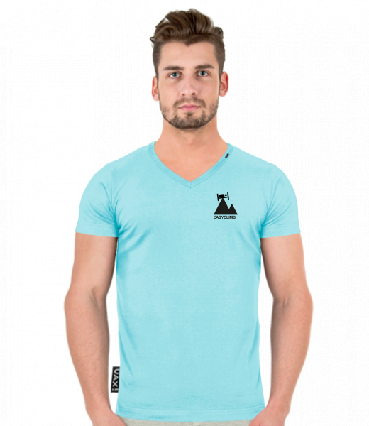 We make sustainable UAX clothing! - hand sewn in the Czech Republic uaxMen uaxAll productsT-shirtsT-SHIRTS SLIM FIT V NECKdesign 22 - EASYCLIMBPASTEL BLUE