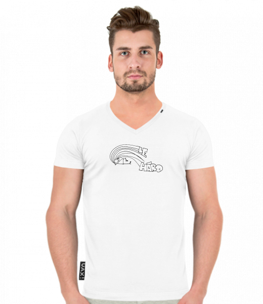 Men's T-shirt SLIM FIT with V nec for man with design 575 LEHARO in color WHITE