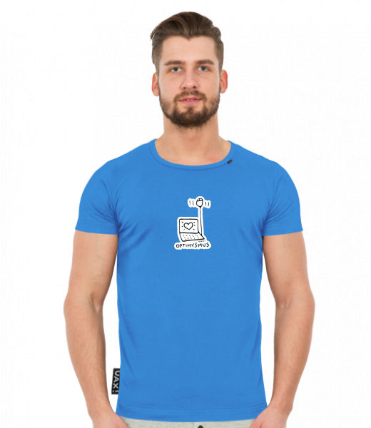 Men's t-shirts SLIM FIT UAX! for man with design 1040 OPTIMYŠMUS in color CAPRI BLUE