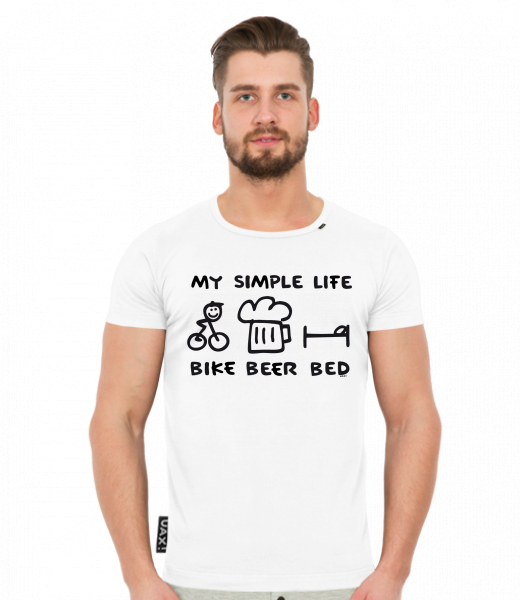 We make sustainable UAX clothing! - hand sewn in the Czech Republic uaxMen uaxAll productsT-shirtsT-SHIRTS SLIM FITdesign 1056 - BIKE BEER BEDWHITE