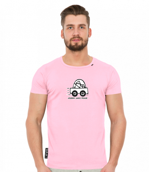 We make sustainable UAX clothing! - hand sewn in the Czech Republic uaxMen uaxAll productsT-shirtsT-SHIRTS SLIM FITdesign 1072 - JEZDÍM JAKO PRASEBABY PINK