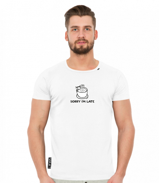 Men's t-shirts SLIM FIT UAX! for man with design 1087 SORRY IM LATE in color WHITE