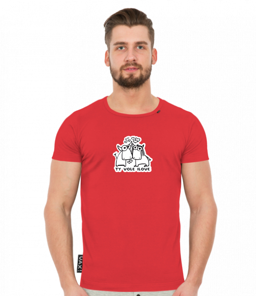 Men's t-shirts SLIM FIT UAX! for man with design 1089 TY VOLE I LOVE in color RED