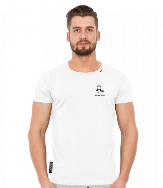 We make sustainable UAX clothing! - hand sewn in the Czech Republic uaxMen uaxAll productsT-shirtsT-SHIRTS SLIM FITdesign 1107 - I LOVE GOLFWHITE
