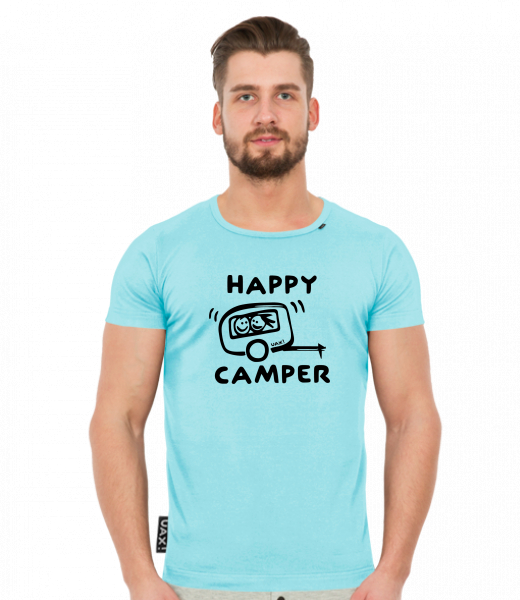 We make sustainable UAX clothing! - hand sewn in the Czech Republic uaxMen uaxAll productsT-shirtsT-SHIRTS SLIM FITdesign 1116 - HAPPY CAMPERPASTEL BLUE