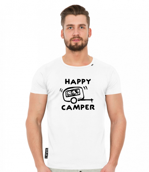 We make sustainable UAX clothing! - hand sewn in the Czech Republic uaxMen uaxAll productsT-shirtsT-SHIRTS SLIM FITdesign 1116 - HAPPY CAMPERWHITE