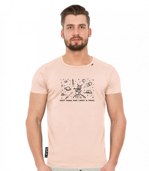 We make sustainable UAX clothing! - hand sewn in the Czech Republic uaxMen uaxAll productsT-shirtsT-SHIRTS SLIM FITdesign 1156 - DON'T PANIC GALAXYCAPPUCINO