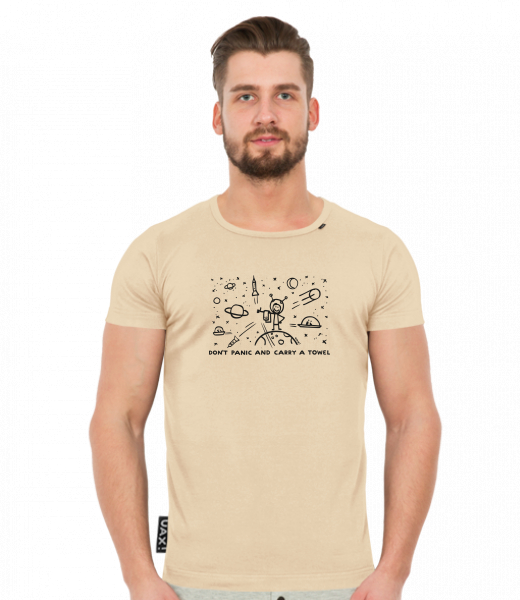 We make sustainable UAX clothing! - hand sewn in the Czech Republic uaxMen uaxAll productsT-shirtsT-SHIRTS SLIM FITdesign 1156 - DON'T PANIC GALAXYCARAMEL