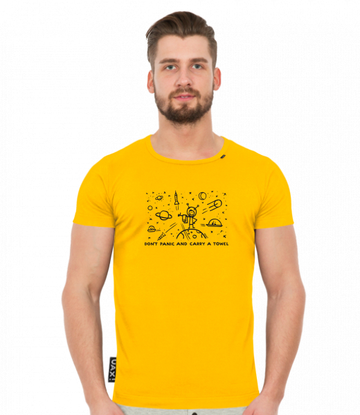 We make sustainable UAX clothing! - hand sewn in the Czech Republic uaxMen uaxAll productsT-shirtsT-SHIRTS SLIM FITdesign 1156 - DON'T PANIC GALAXYGOLDEN CREAM