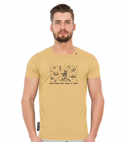 We make sustainable UAX clothing! - hand sewn in the Czech Republic uaxMen uaxAll productsT-shirtsT-SHIRTS SLIM FITdesign 1156 - DON'T PANIC GALAXYMUSTARD