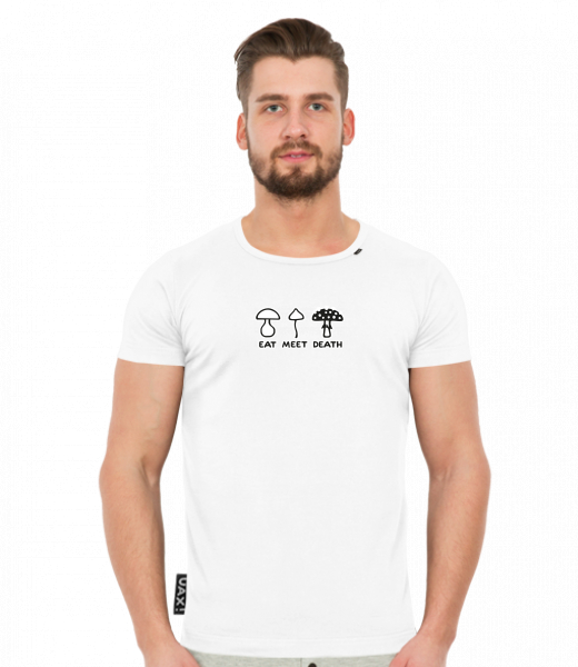 We make sustainable UAX clothing! - hand sewn in the Czech Republic uaxMen uaxAll productsT-shirtsT-SHIRTS SLIM FITdesign 1177 - EAT MEET DEATHWHITE