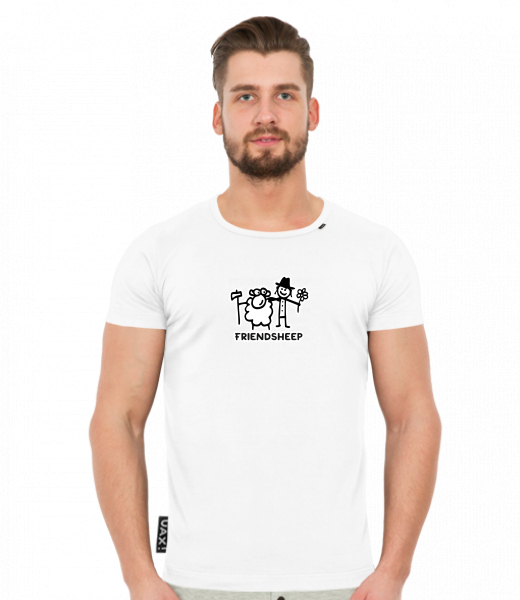 We make sustainable UAX clothing! - hand sewn in the Czech Republic uaxMen uaxAll productsT-shirtsT-SHIRTS SLIM FITdesign 1205 - FRIENDSHEEPWHITE