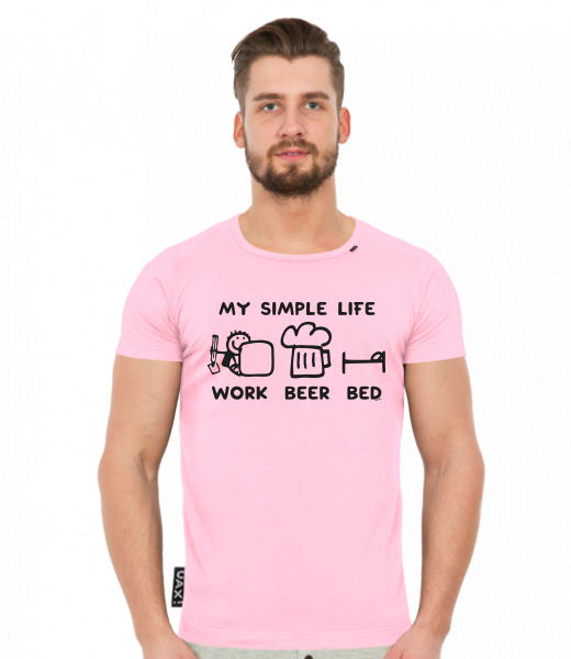 We make sustainable UAX clothing! - hand sewn in the Czech Republic uaxMen uaxAll productsT-shirtsT-SHIRTS SLIM FITdesign 1211 - MY SIMPLE LIFE WORK BEER BEDBABY PINK
