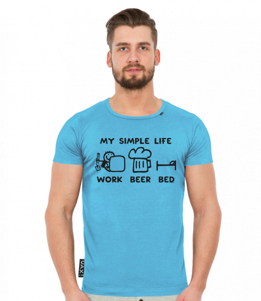 We make sustainable UAX clothing! - hand sewn in the Czech Republic uaxMen uaxAll productsT-shirtsT-SHIRTS SLIM FITdesign 1211 - MY SIMPLE LIFE WORK BEER BEDBLUE ATOLL