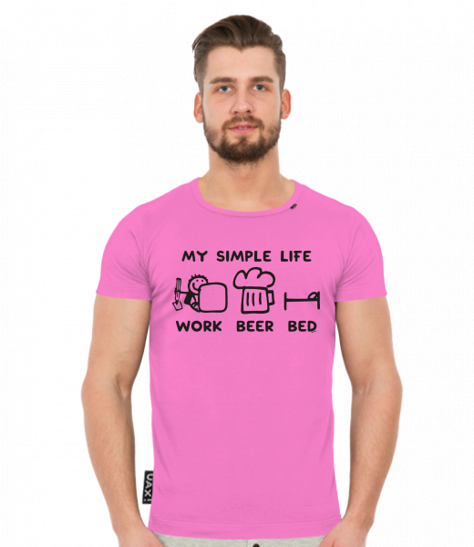 We make sustainable UAX clothing! - hand sewn in the Czech Republic uaxMen uaxAll productsT-shirtsT-SHIRTS SLIM FITdesign 1211 - MY SIMPLE LIFE WORK BEER BEDCLASSIC PINK