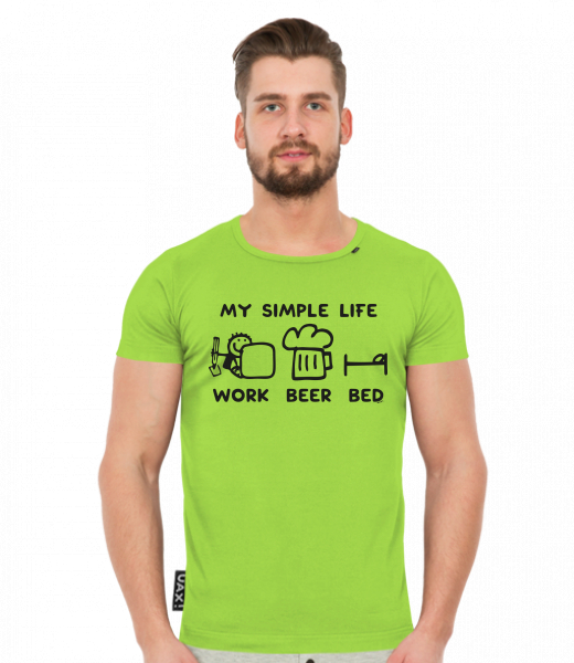 We make sustainable UAX clothing! - hand sewn in the Czech Republic uaxMen uaxAll productsT-shirtsT-SHIRTS SLIM FITdesign 1211 - MY SIMPLE LIFE WORK BEER BEDPARROT GREEN