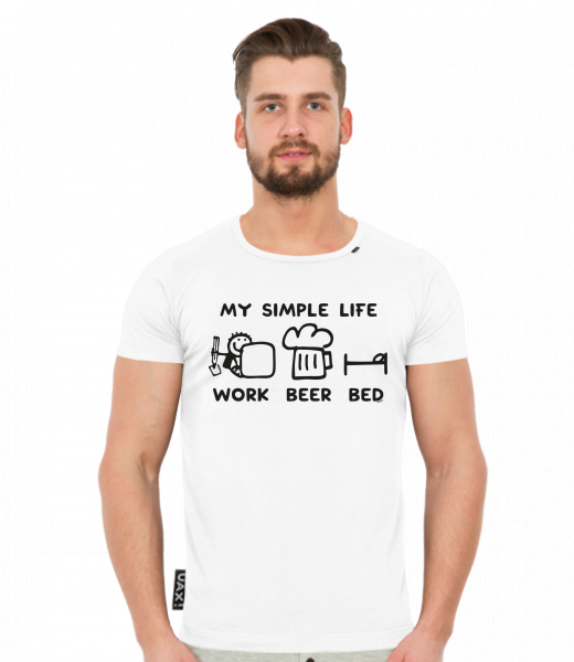 We make sustainable UAX clothing! - hand sewn in the Czech Republic uaxMen uaxAll productsT-shirtsT-SHIRTS SLIM FITdesign 1211 - MY SIMPLE LIFE WORK BEER BEDWHITE