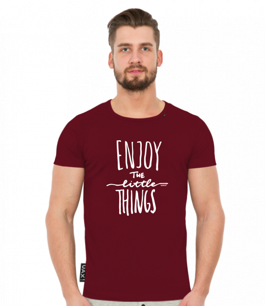 We make sustainable UAX clothing! - hand sewn in the Czech Republic uaxMen uaxAll productsT-shirtsT-SHIRTS SLIM FITdesign 1222 - ENJOY THE LITTLE THINGSDARK RED