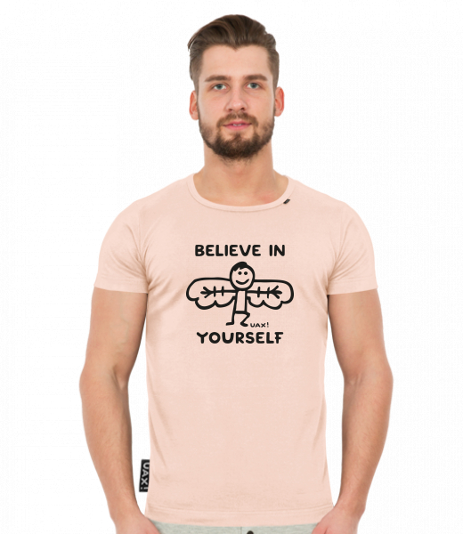 We make sustainable UAX clothing! - hand sewn in the Czech Republic uaxMen uaxAll productsT-shirtsT-SHIRTS SLIM FITdesign 1228 - BELIEVE IN YOURSELFCAPPUCINO