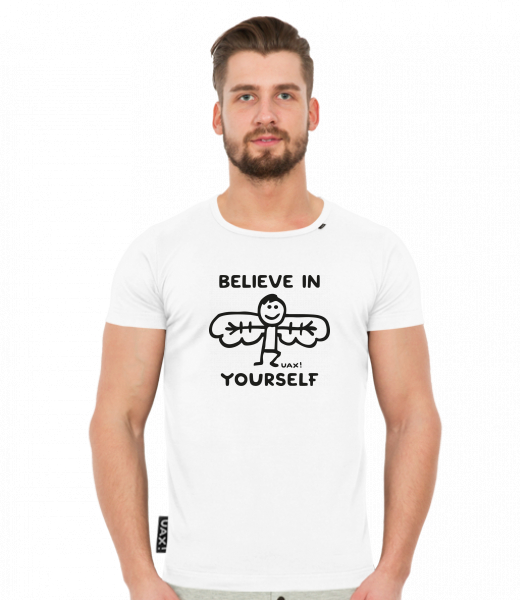 We make sustainable UAX clothing! - hand sewn in the Czech Republic uaxMen uaxAll productsT-shirtsT-SHIRTS SLIM FITdesign 1228 - BELIEVE IN YOURSELFWHITE