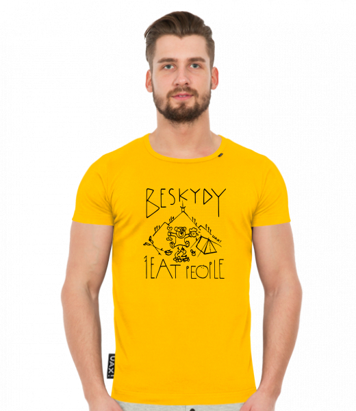 We make sustainable UAX clothing! - hand sewn in the Czech Republic uaxMen uaxAll productsT-shirtsT-SHIRTS SLIM FITdesign 1241 - I EAT PEOPLE BESKYDYGOLDEN CREAM