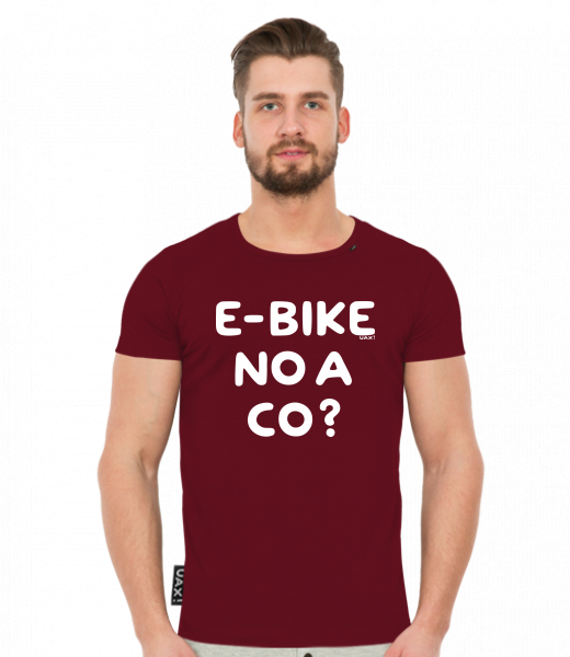 We make sustainable UAX clothing! - hand sewn in the Czech Republic uaxMen uaxAll productsT-shirtsT-SHIRTS SLIM FITdesign 1292 - E-BIKE NO A CO?DARK RED